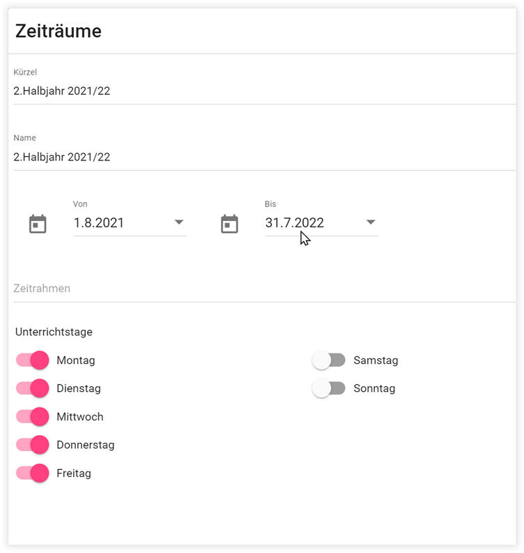 Wenn die Stundenplandaten übertragen wurden, ordnen Sie bitte den in DaVinci verwendeten Zeitrahmen dem Zeitraum zu.