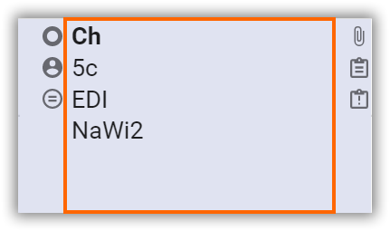 Jedes Element in der Ansicht WOCHE besteht aus 3 Bereichen. Diese sind in der Reihenfolge ihrer Darstellung von links nach rechts: